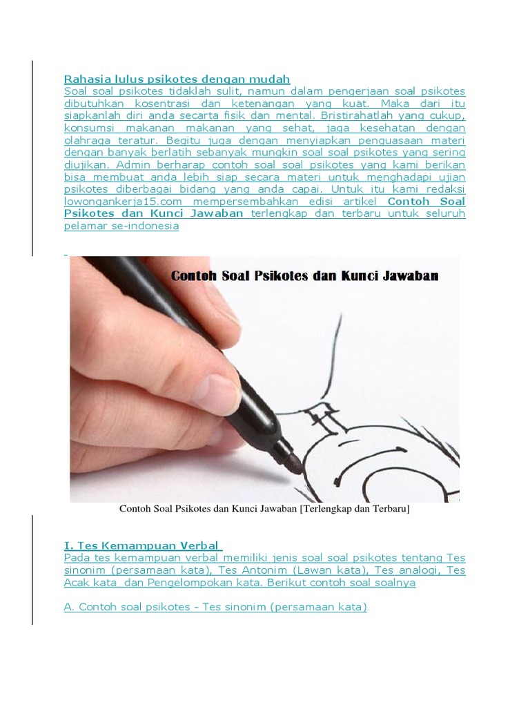 Contoh Soal Psikotes Dan Kunci Jawaban Terlengkap Dan