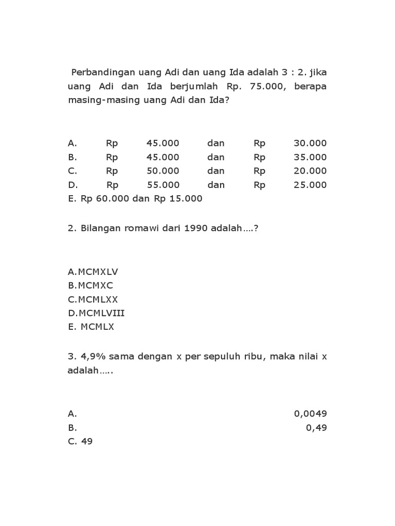 Contoh Soal Psikotes Aritmatika Soal Test Iq