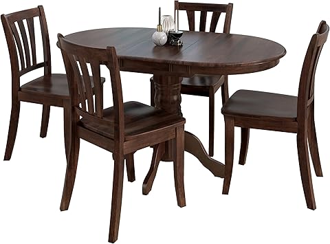 This brookline 5 piece dining set features a round solid wood top with a beautifully carved pedestal base.