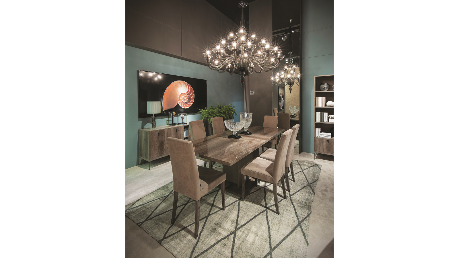 A versatile sideboard completes the set by offering ample opportunities for storage and display.